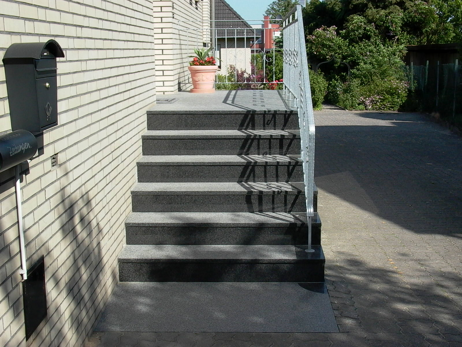 Generell kann man sagen, dass Eingangspodeste immer individuell sind, da sie den baulich bedingten Situationen des Hauses angepasst werden und genau hierfür stehen ich mit meinen Fachkenntnissen für Sie bereit.